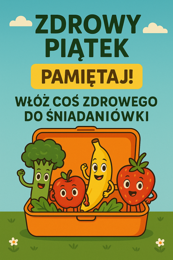 Przypominamy, że w każdy piątek zachęcamy wszystkich uczniów do przynoszenia do szkoły zdrowych, wartościowych przekąsek. To doskonała okazja, aby wspólnie budować dobre nawyki żywieniowe i pokazywać, że zdrowe jedzenie może być smaczne, kolorowe i różnorodne.