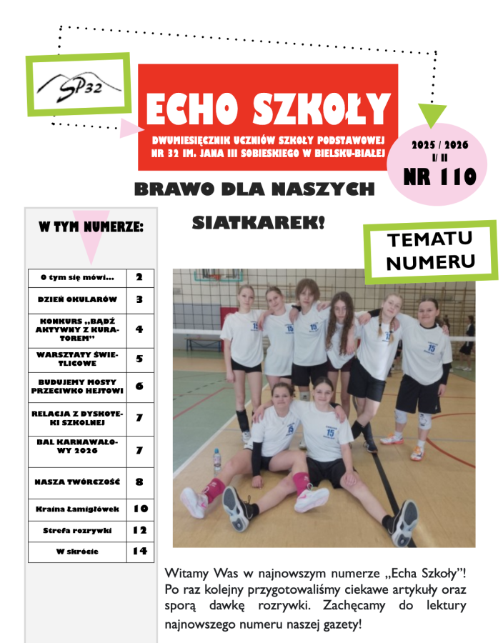 Witamy Was w najnowszym numerze „Echa Szkoły”! Po raz kolejny przygotowaliśmy ciekawe artykuły oraz sporą dawkę rozrywki. Zachęcamy do lektury najnowszego numeru naszej gazety.