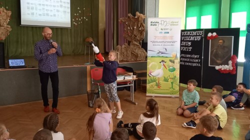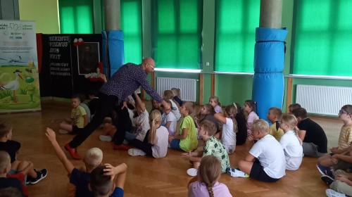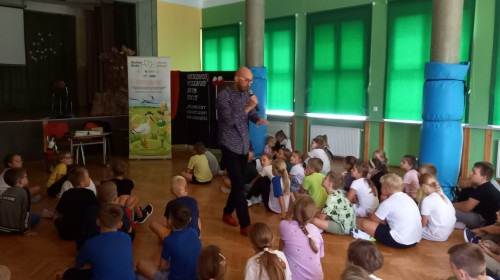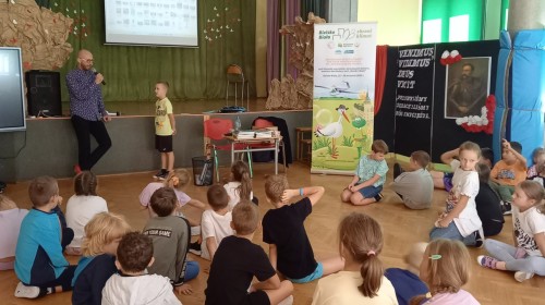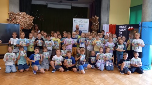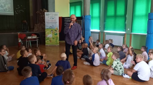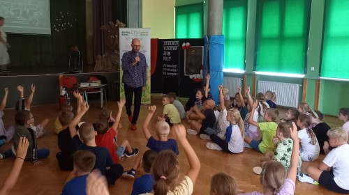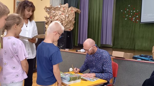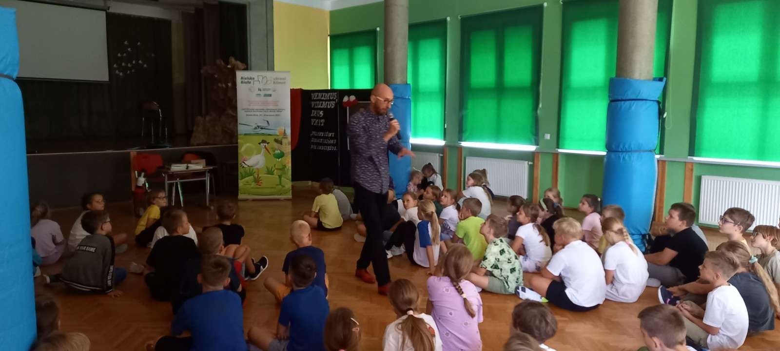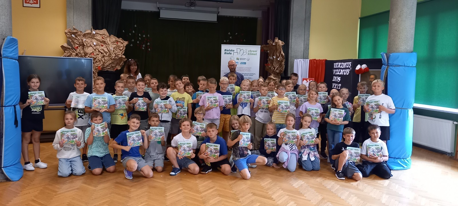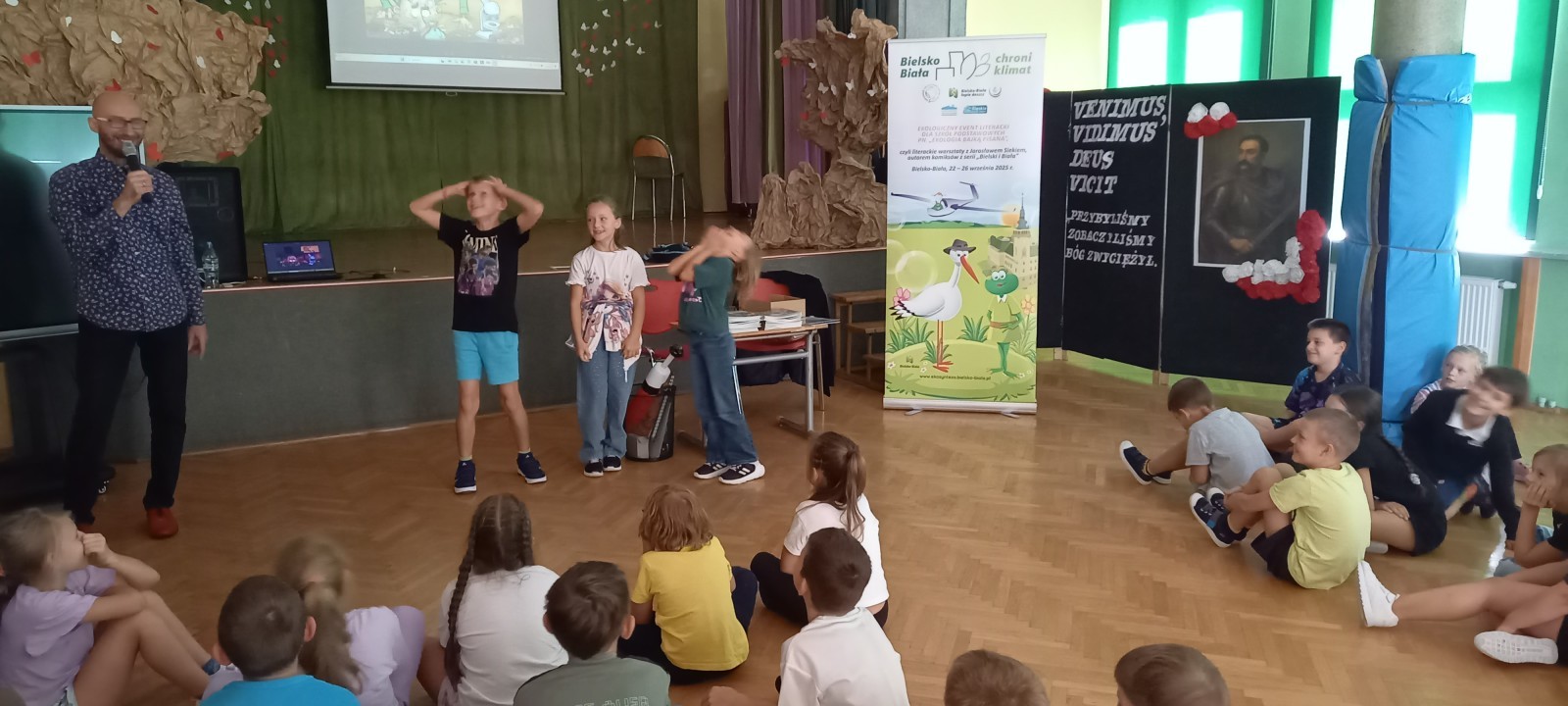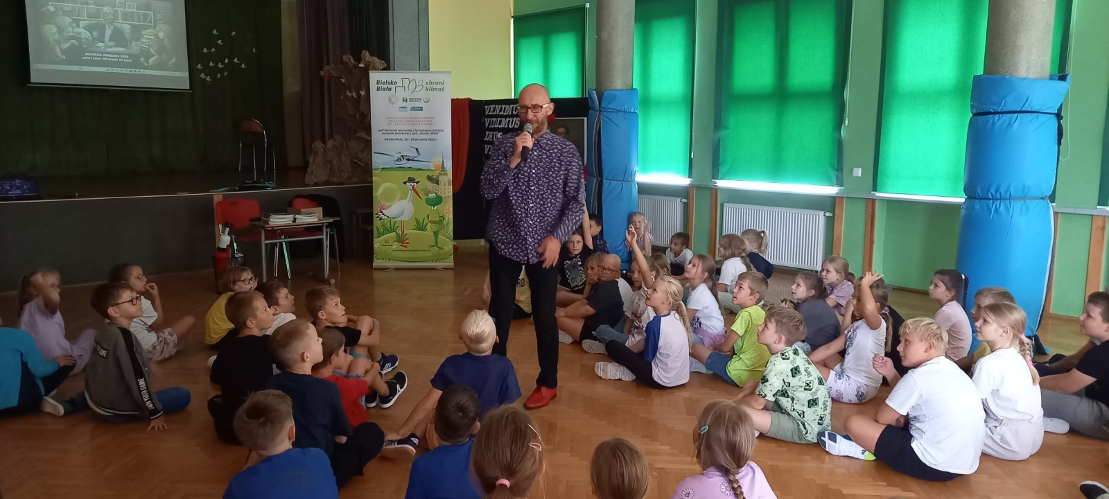 W dniu 22 września w szkolnej auli odbyło się wyjątkowe wydarzenie. Urząd Miejski w Bielsku – Białej, za ogromne zaangażowanie społeczności naszej szkoły w 15 edycji konkursu „Szanuj energię, chroń klimat” w ramach nagrody ufundował Ekologiczny Event Literacki z Panem Jarosławem Siekiem pod nazwą „Ekologia bajką pisana”, czyli literackie warsztaty z autorem komiksów z serii „Bielski i Biała”. Uczestniczyli w nich wychowankowie szkolnej świetlicy – uczniowie klas drugich i trzecich.