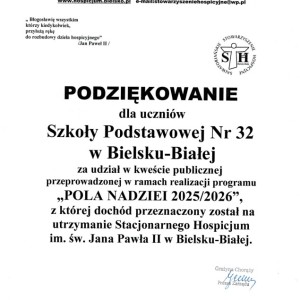 PODZIĘKOWANIE ZA UDZIAŁ W AKCJI „POLA NADZIEI 2025...
