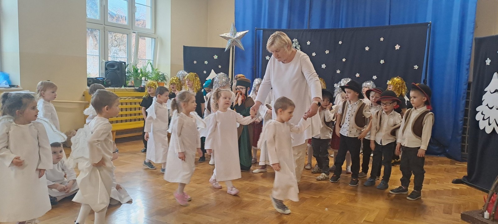 W realizację tego niezwykłego widowiska zaangażowane były wszystkie przedszkolaki – od najmłodszych po najstarszych. Mali aktorzy zaprezentowali poruszający program artystyczny, który w niezwykle urokliwy sposób ukazywał historię narodzenia Pana Jezusa. Występ zrobił ogromne wrażenie na trzecioklasistach i został nagrodzony gromkimi brawami. Serdecznie dziękujemy Pani Dyrektor Agnieszce Kroczek i paniom nauczycielkom oraz wszystkim osobom, które z wielkim zaangażowaniem i sercem przyczyniły się do zorganizowania tego pięknego wydarzenia. Było to niezwykłe spotkanie, które na długo pozostanie w naszej pamięci.