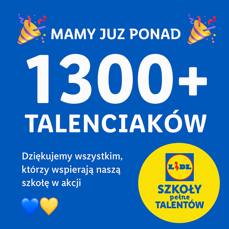 Dziękujemy wszystkim uczniom, rodzicom, nauczycielom i przyjaciołom Naszej Szkoły za ogromne zaangażowanie w akcji „Szkoły Pełne Talentów”. Dzięki Wam udało się zebrać już ponad 1300 Talenciaków! 🏆