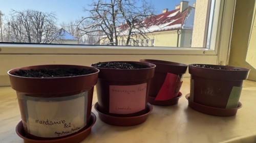 28 listopada na lekcjach języka włoskiego uczniowie klas ósmych założyli mini ogródek śródziemnomorski na klasowym parapecie. Zasiali w doniczkach bazylię – basilico, rozmaryn – rosmarino, mandarynkę – mandarino i lawendę – lavanda, do których wkrótce dołączy drzewko pomarańczowe – arancio oraz inne śródziemnomorskie roślinki. Te typowe dla włoskiego klimatu zioła i cytrusy pozwolą poczuć nam południowy klimat, zwłaszcza teraz, gdy za oknem zima i śnieg.