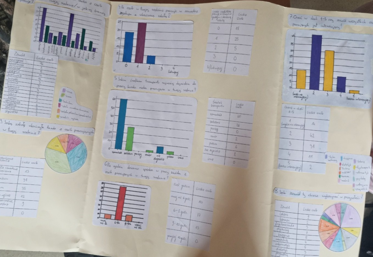 Projekt łączył elementy matematyki, statystyki i edukacji zawodowej. Zadaniem uczniów było przygotowanie pracy dotyczącej zawodów wykonywanych przez ich rodziców lub opiekunów. Każdy uczeń zbierał informacje odpowiadające na osiem konkretnych pytań: