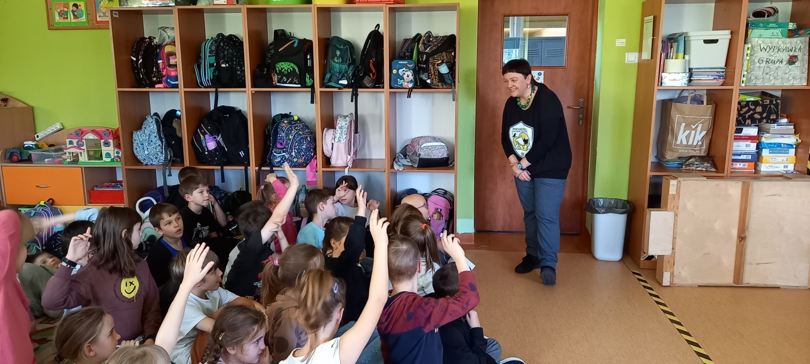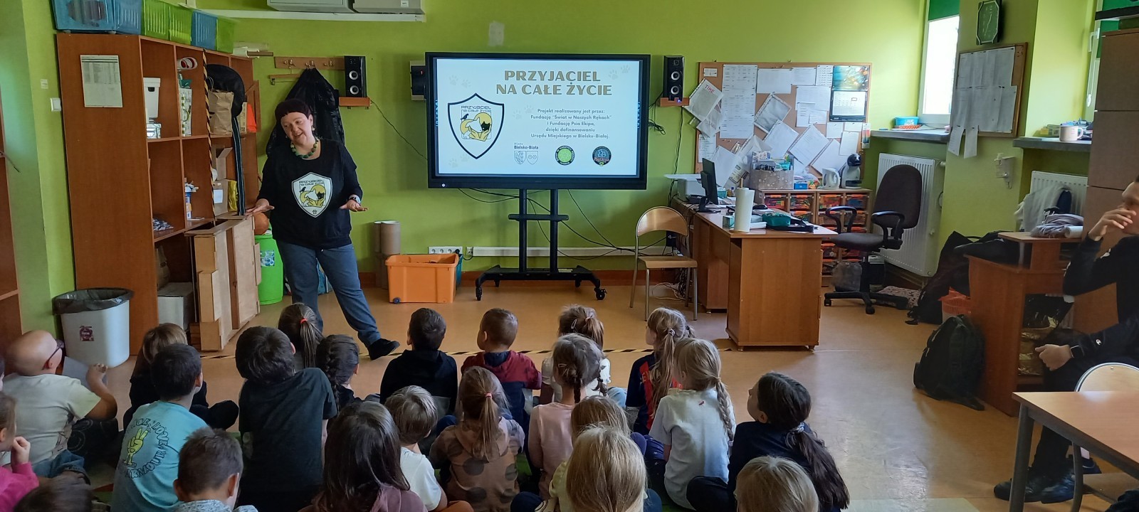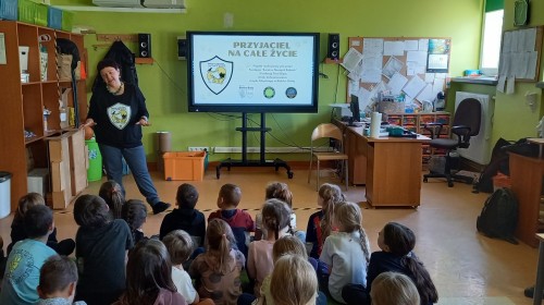 W dniu 7.11.2025r. dzieci z grupy żółtej i czerwonej ze szkolnej świetlicy uczestniczyły w warsztatach w ramach akcji edukacyjnej „Przyjaciel na całe życie”. Zostały one zorganizowane przez Fundację „Świat w naszych rękach” i Fundację Psia Ekipa. Jest to projekt edukacyjny promujący postawę odpowiedzialności za posiadane zwierzę, poruszający tematykę standardów utrzymania zwierząt i zapobiegania ich bezdomności. Projekt ten ma na celu zmniejszenie liczby zwierząt trafiających do schronisk, porzucanych na ulicy czy trzymanych na łańcuchu.