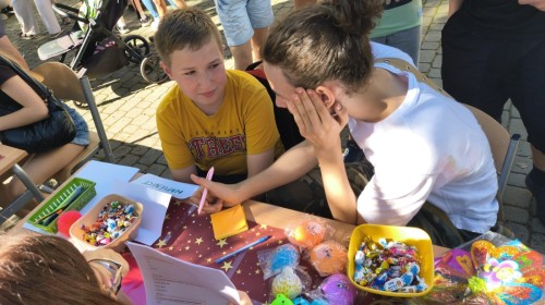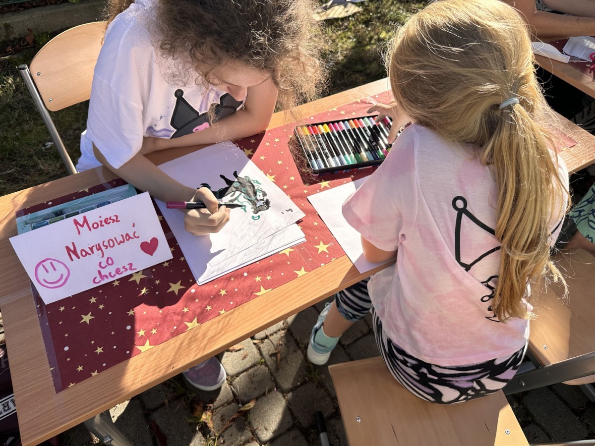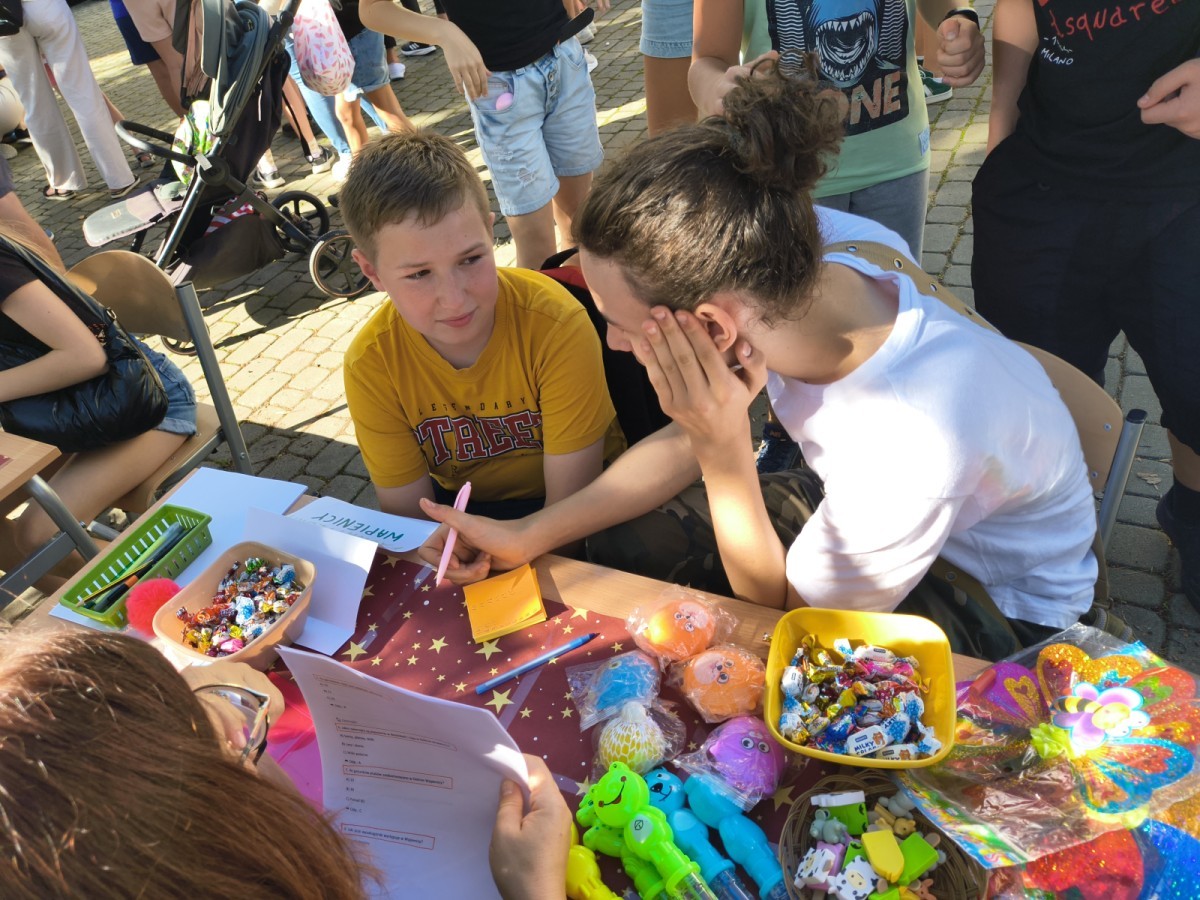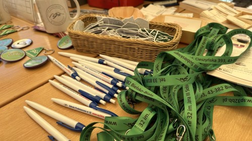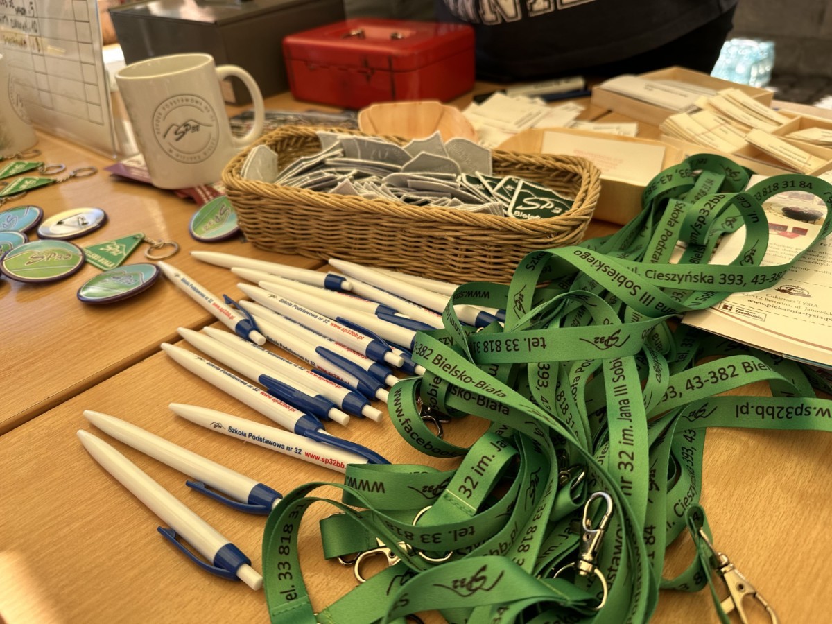 Podczas wydarzenia można było kupić gadżety naszej szkoły, które cieszyły się dużym zainteresowaniem i stały się wyjątkową pamiątką tego dnia.