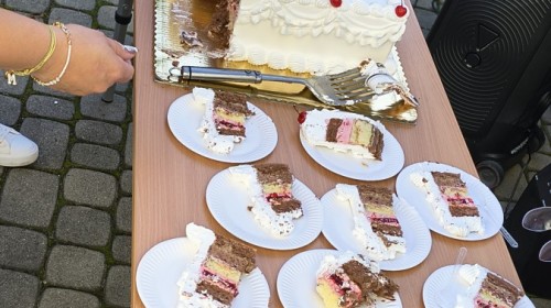 🍴 Nie zabrakło też pysznego jedzenia – domowych ciast upieczonych przez rodziców, grillowanych smakołyków, oraz wyjątkowego tortu ufundowanego przez Cukiernię Tysia z Czechowic-Dziedzic.