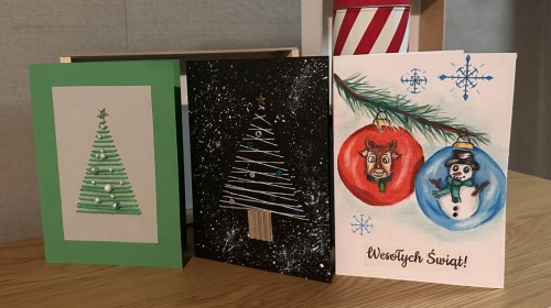 W tym roku wykonane przez uczniów kartki świąteczne zostaną przekazane wolontariuszom Szlachetnej Paczki.