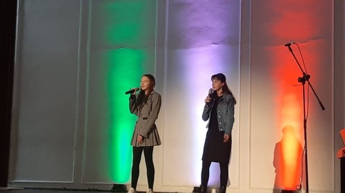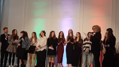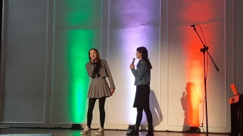 Uczennice klasy 7d – Roksana Jurasz i Martyna Szkorupa – wykonując utwór z repertuaru Al Bano i Rominy Power pt. „Sharazan”, wywalczyły I miejsce w kategorii szkół podstawowych. Naszą szkołę godnie reprezentowały również uczennice z klasy 8c – Lena Orkisz, Hanna Pocha, Karolina Siręga i Anna Szczotka – które zaprezentowały tradycyjną pieśń „Bella ciao”.