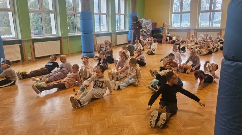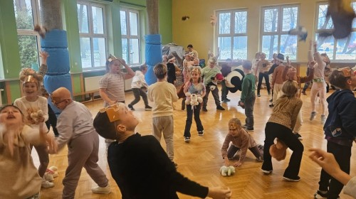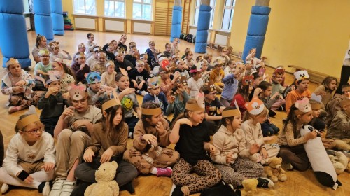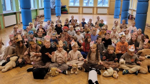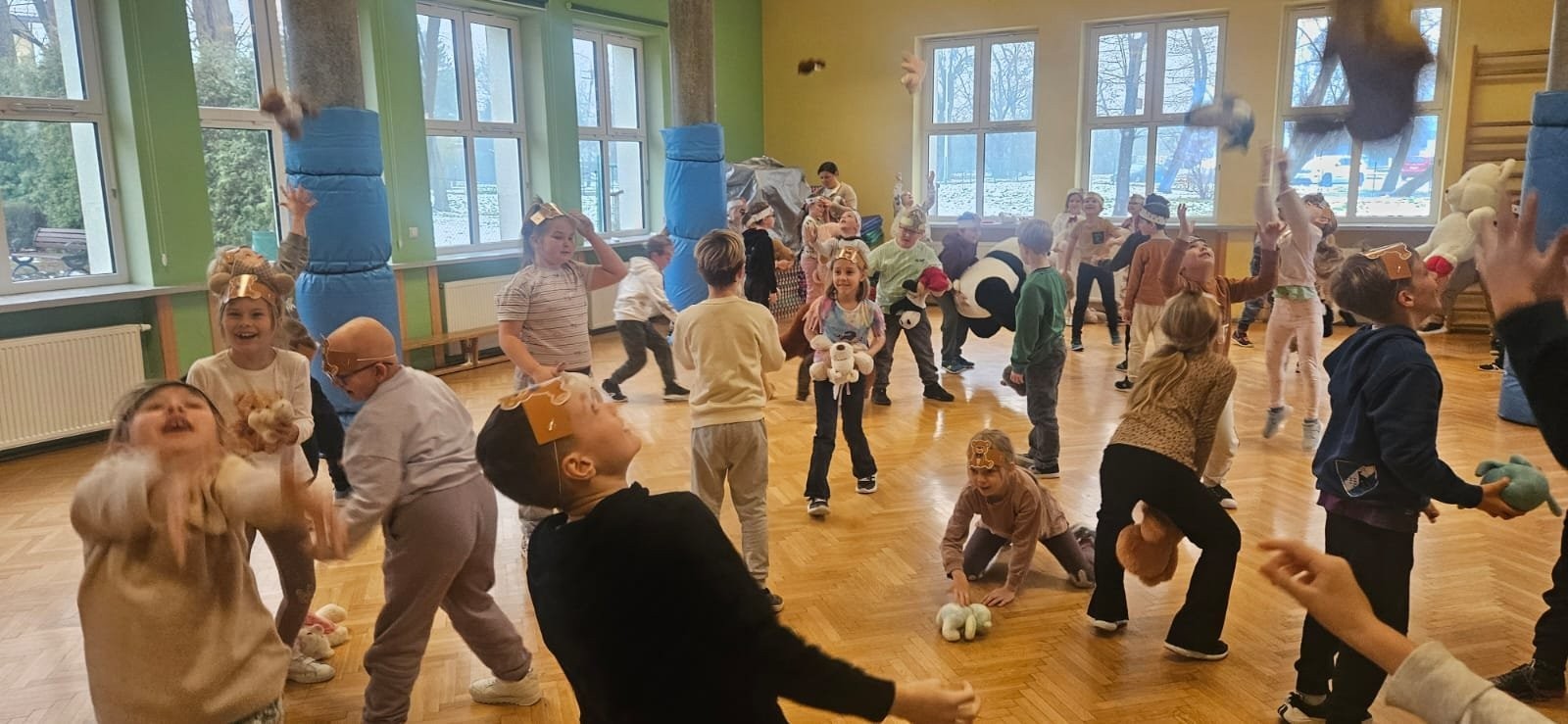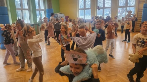 Klasy drugie wspólnie bawiły się w auli na spotkaniu integracyjnym przygotowanym przez panie Annę Twardzik i Anetę Wochnik. Dzieci bawiły się, śpiewały i gimnastykowały się ze swoimi misiami. Obejrzały również film edukacyjny o niedźwiedziu brunatnym i wzięły udział w konkursie sprawdzającym znajomość bajkowych misiów. Było wesoło, kolorowo i radośnie...