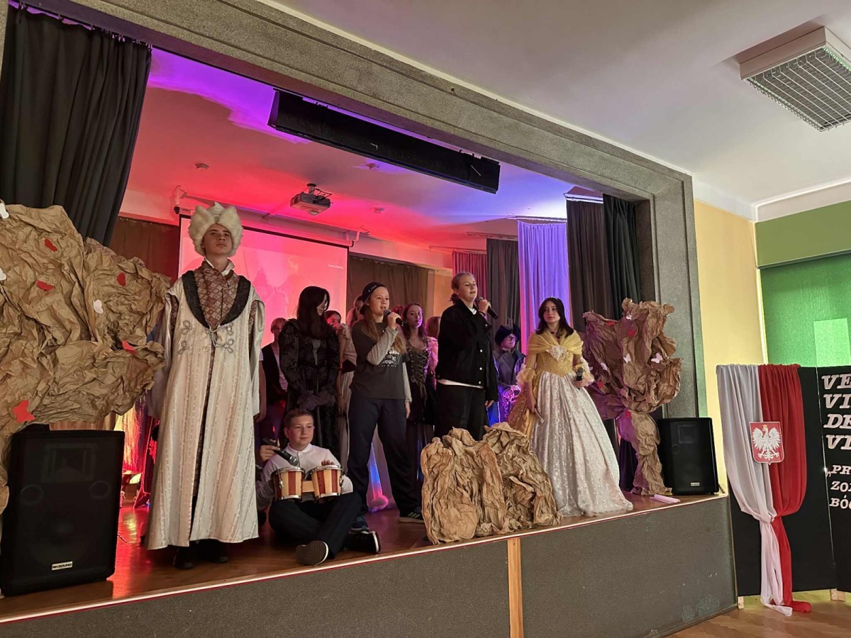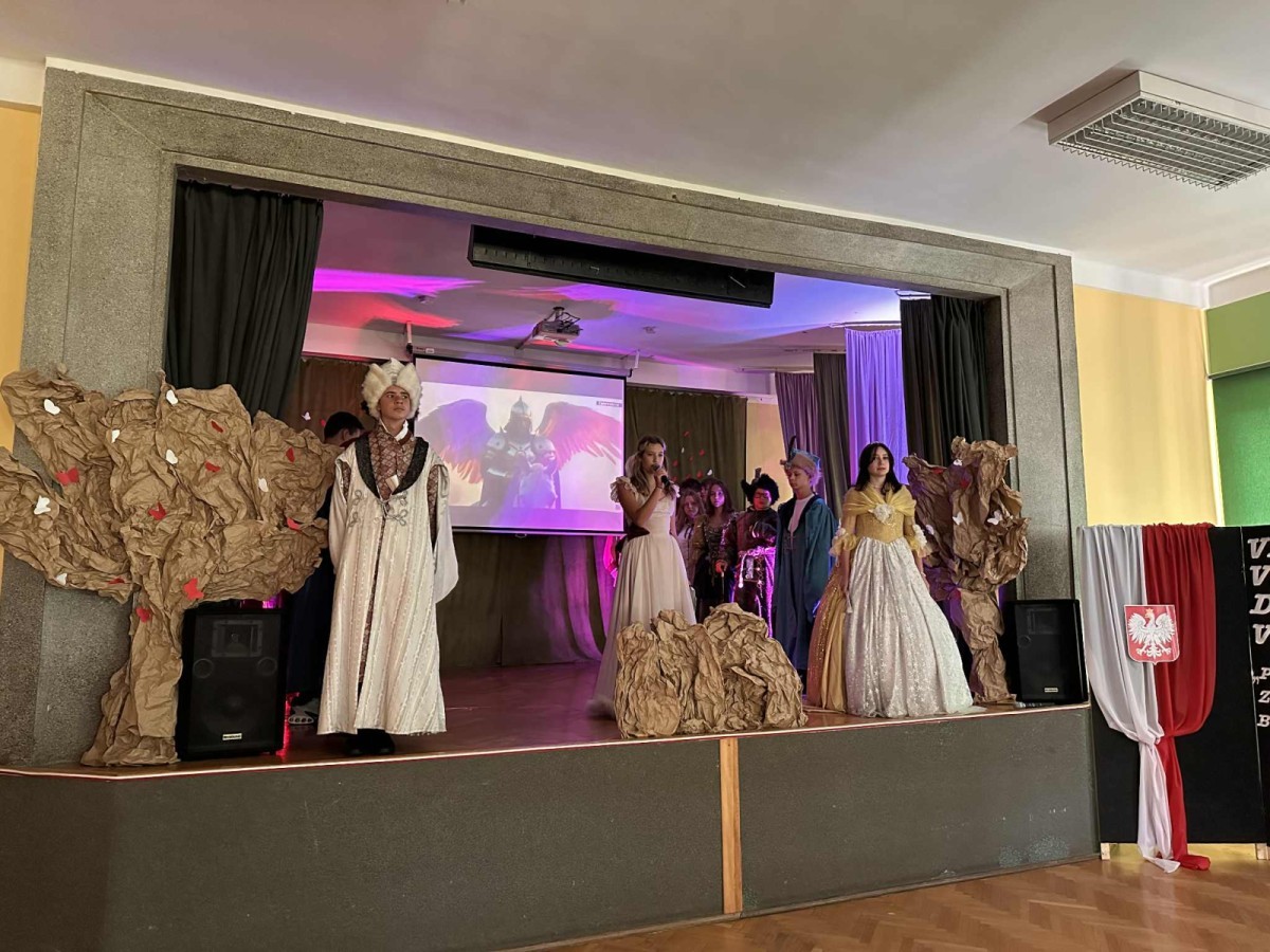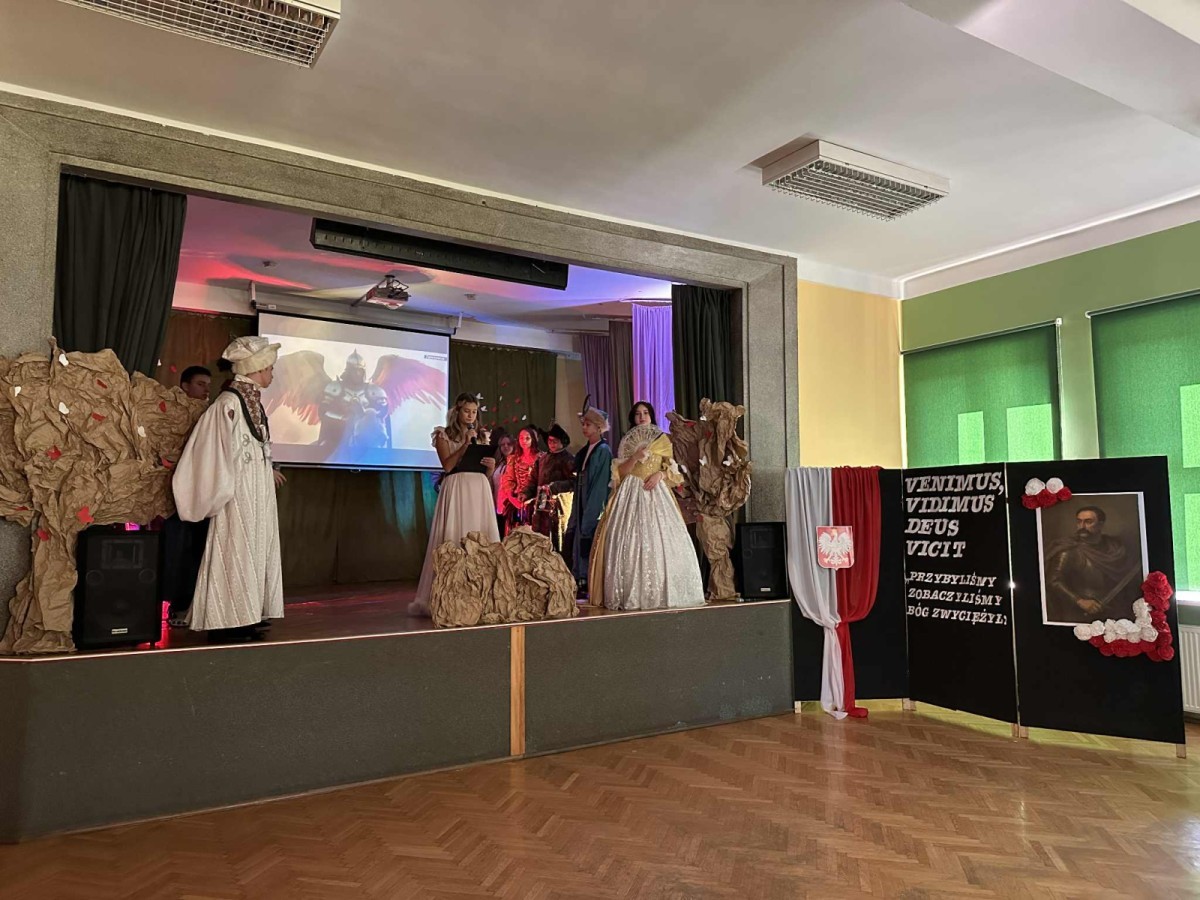 Uczniowie przygotowali występ historyczny, który przybliżył życie oraz dokonania króla Jana III Sobieskiego – wielkiego wodza, stratega i obrońcy ojczyzny. Na scenie pojawiły się barwne stroje z epoki, scenki historyczne oraz fragmenty opisujące najważniejsze wydarzenia z życia naszego patrona.