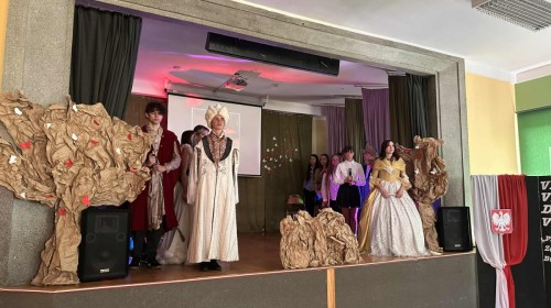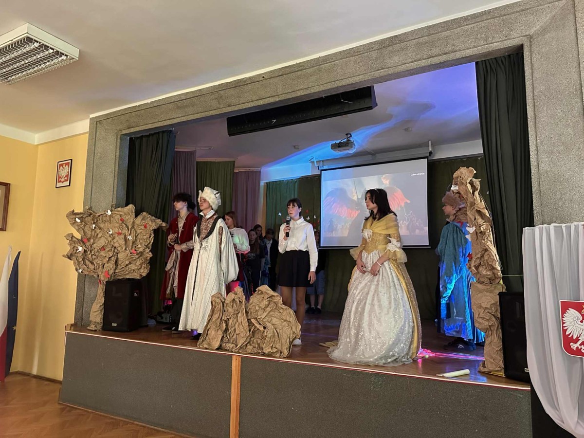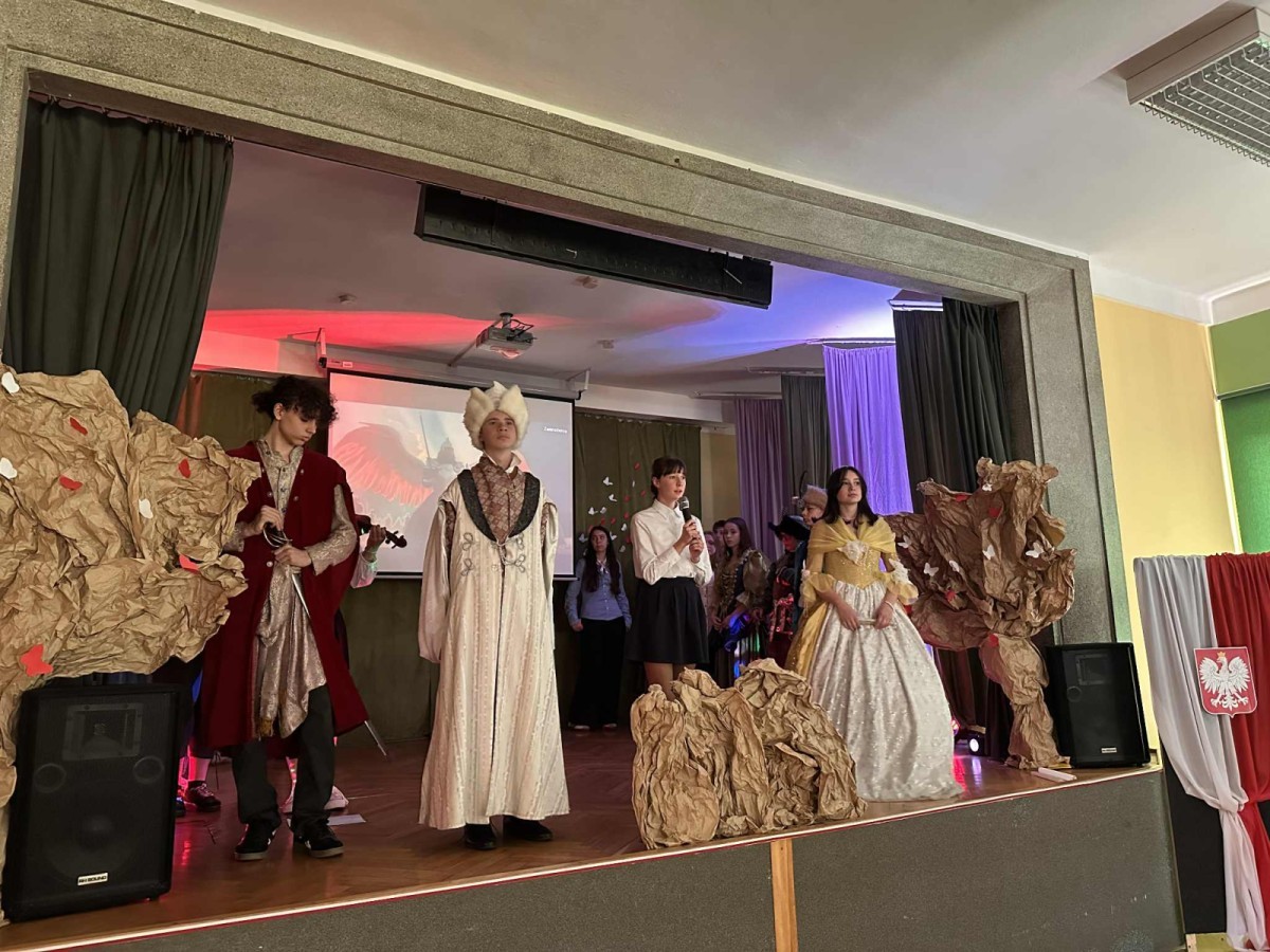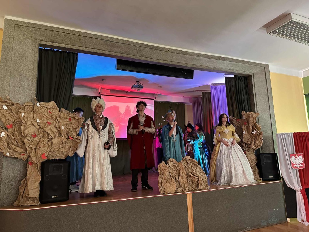 Uczniowie przygotowali występ historyczny, który przybliżył życie oraz dokonania króla Jana III Sobieskiego – wielkiego wodza, stratega i obrońcy ojczyzny. Na scenie pojawiły się barwne stroje z epoki, scenki historyczne oraz fragmenty opisujące najważniejsze wydarzenia z życia naszego patrona.