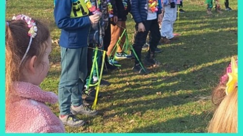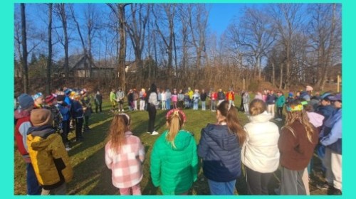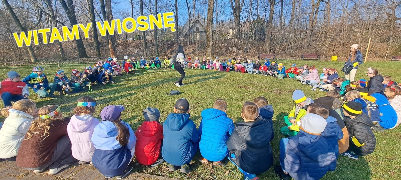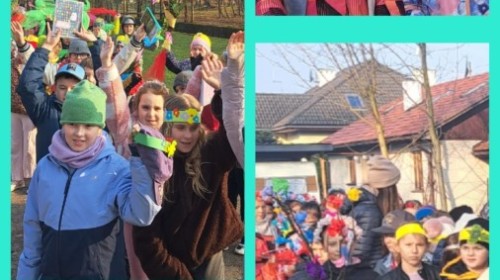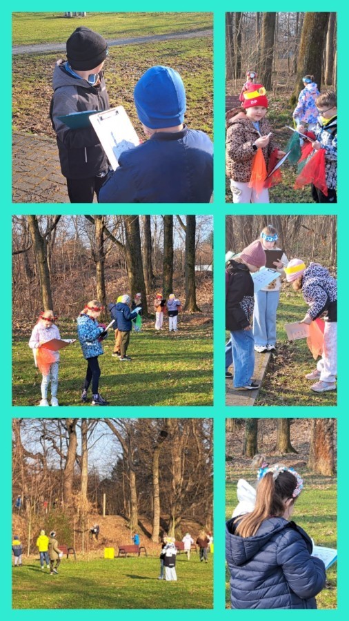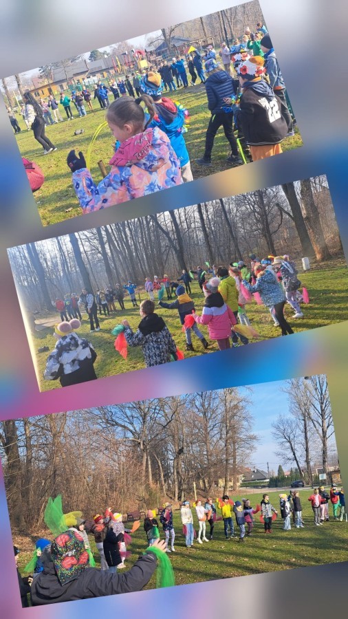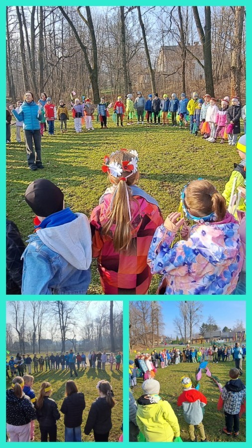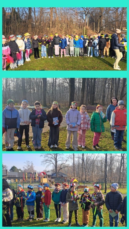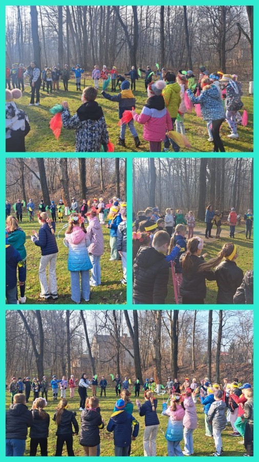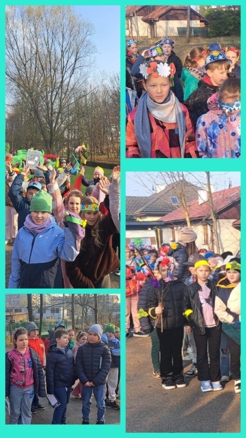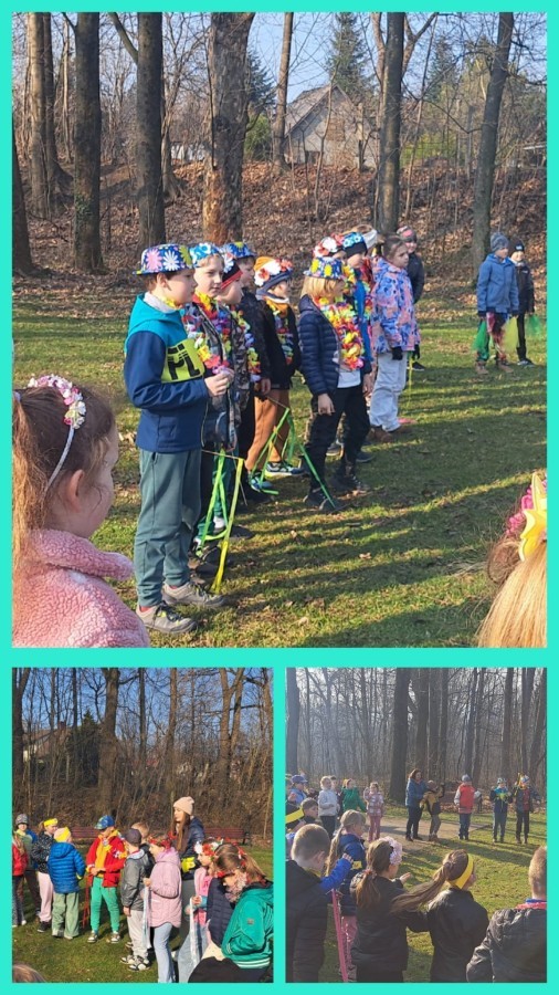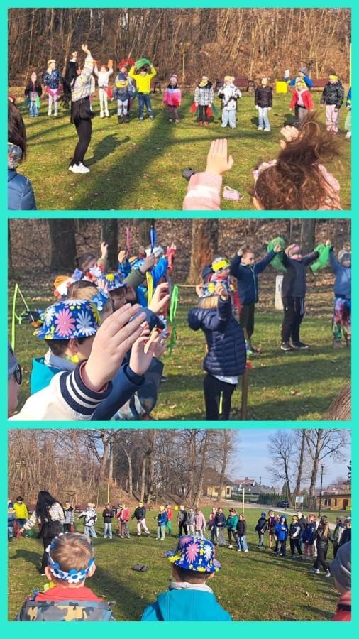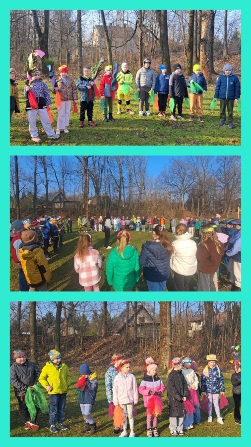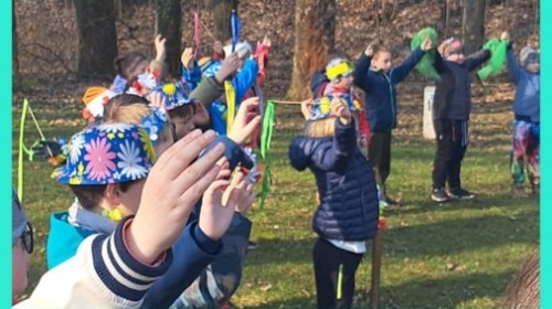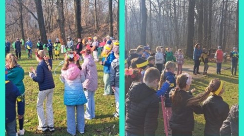 W przeddzień kalendarzowej wiosny uczniowie klas 2b, 2d, 3a i 3d wybrali się na wyjątkowy spacer wzdłuż rzeki Wapienicy. Cała grupa prezentowała się przepięknie — w wiosennych akcentach, wiankach, opaskach i z kolorowymi chustkami tworzyła radosny, barwny korowód. Spacer miał charakter zarówno edukacyjny, jak i integracyjny, a także był doskonałą okazją do bezpośredniego kontaktu z naturą i obserwowania, jak przyroda zmienia się z dnia na dzień. Dzieci mogły doświadczać jej wszystkimi zmysłami, uczyć się poprzez działanie i odkrywanie, a jednocześnie cieszyć się ruchem na świeżym powietrzu. Dzieci wcieliły się w prawdziwych tropicieli wiosny. Każdy uczestnik otrzymał specjalną checklistę, na której zaznaczał pierwsze oznaki budzącej się do życia przyrody. Uważne oczy i ciekawość świata sprawiły, że lista szybko zapełniała się obserwacjami — pojawiające się pąki, pierwsze kwiaty, śpiew ptaków, delikatnie zazieleniające się drzewa. Nie zabrakło także wspólnej zabawy i radosnej integracji. Wspólne zadania, taniec przy muzyce, rozmowy i dzielenie się odkryciami budowały relacje oraz wzmacniały współpracę w grupie. To był czas pełen uśmiechu, ciekawości i bycia razem. Takie chwile pokazują, że nauka może być przygodą, a integracja dzieje się naturalnie — krok po kroku, we wspólnym odkrywaniu świata.