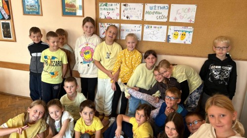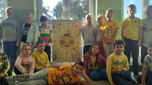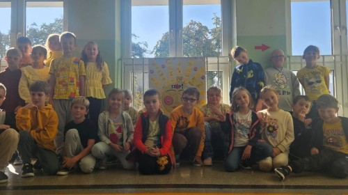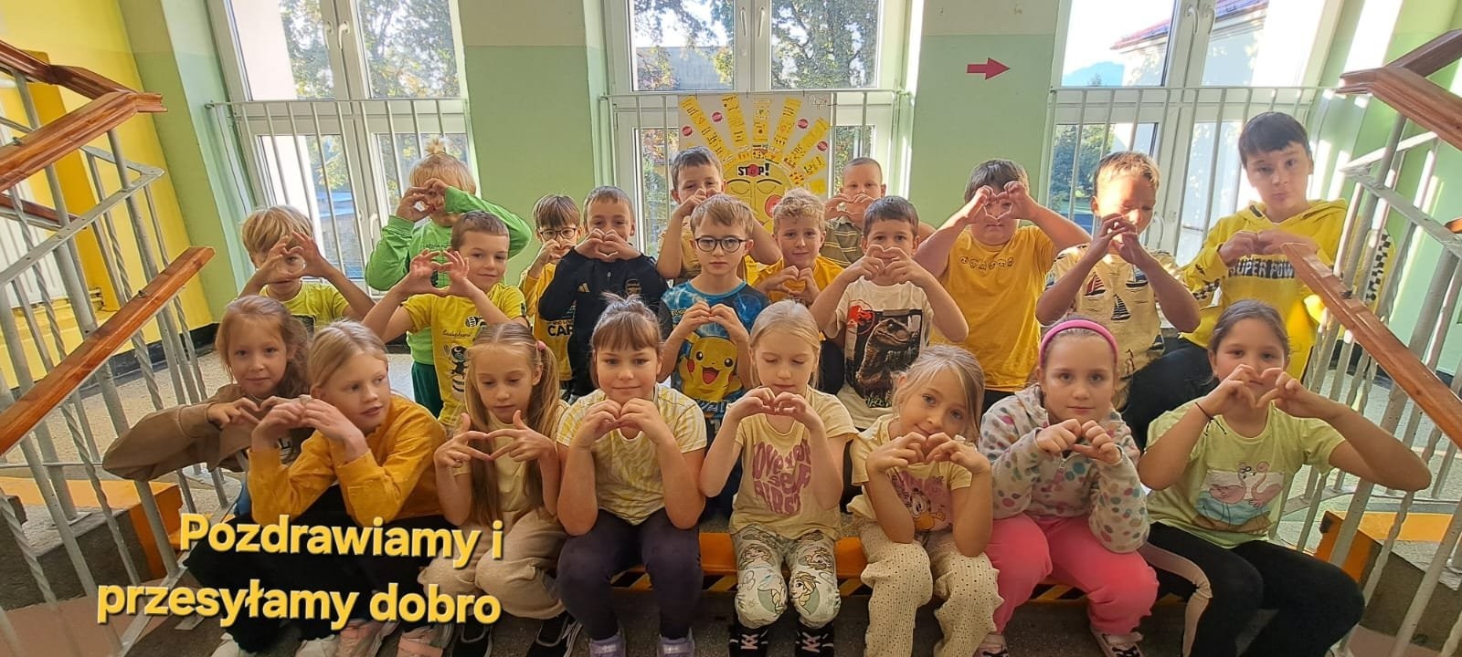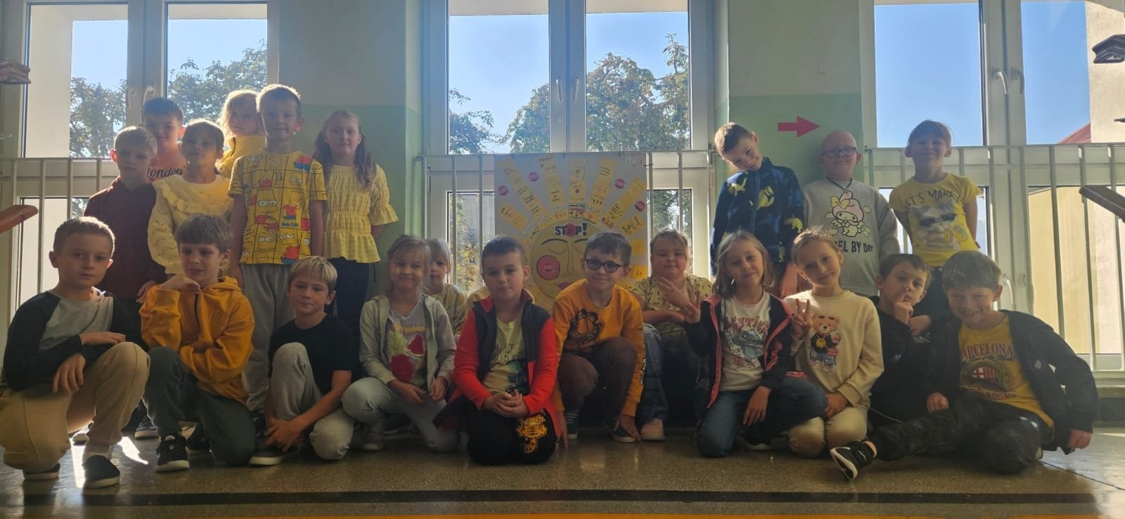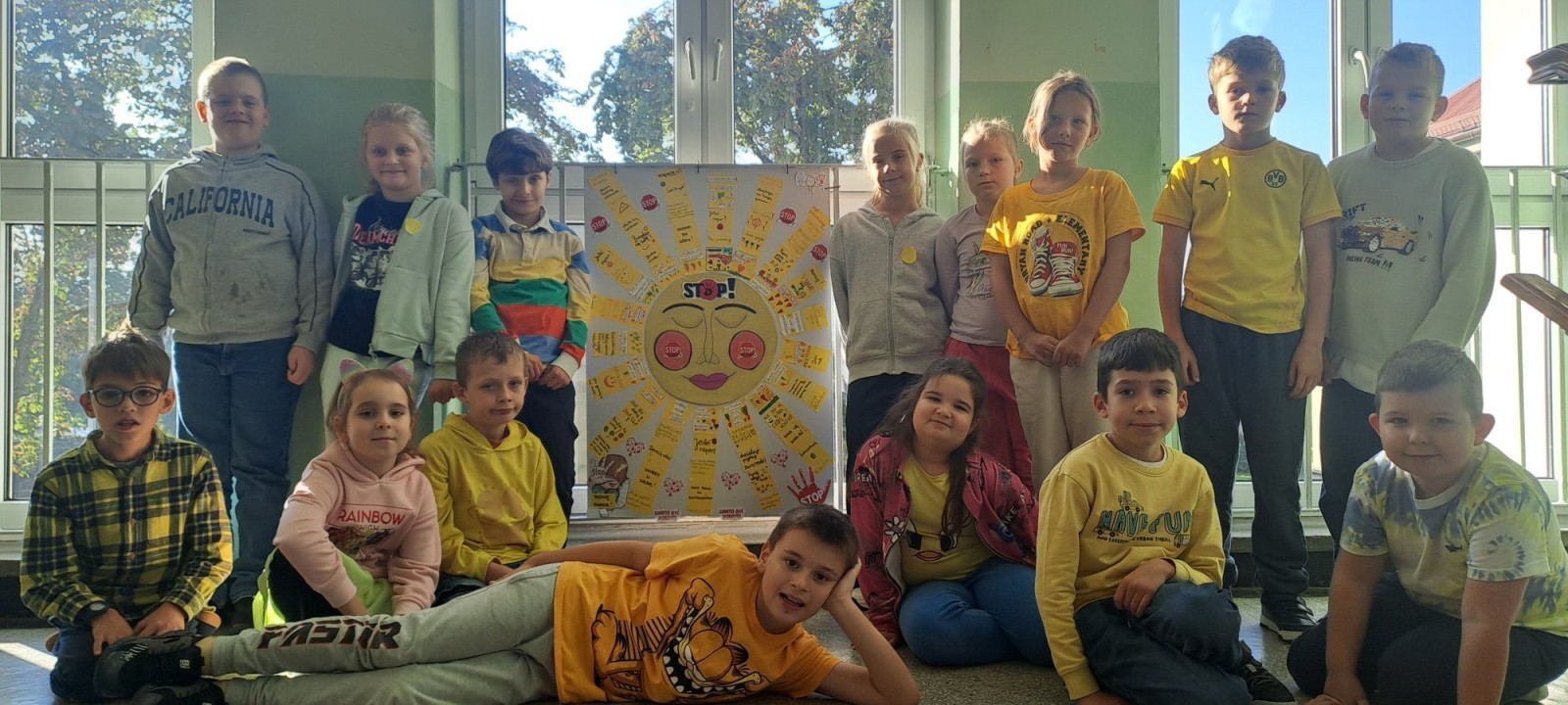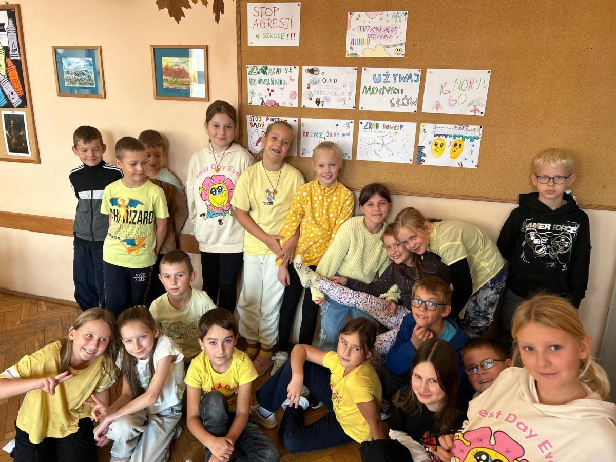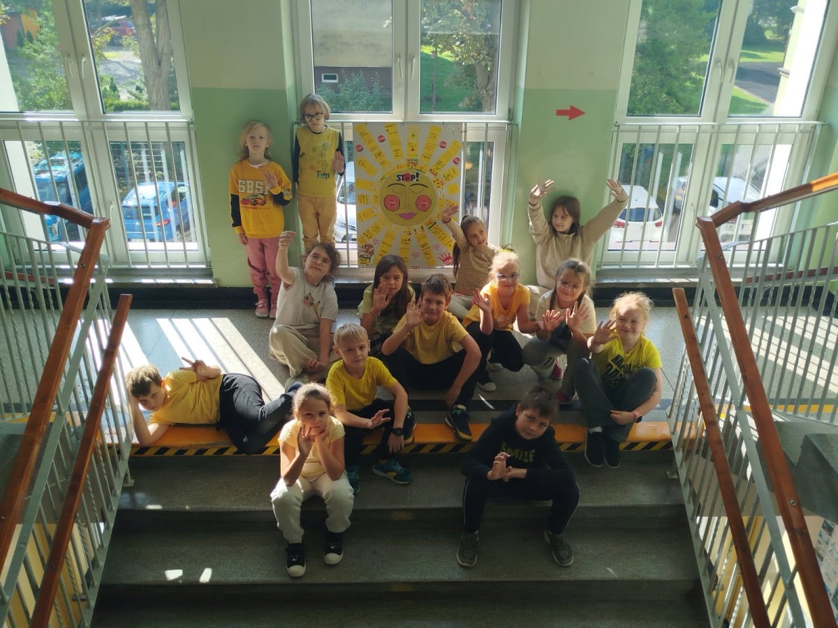 Na zakończenie obchodów zorganizowaliśmy „Żółty Piątek” – dzień symbolizujący solidarność i sprzeciw wobec przemocy. W akcji brały udział klasy 1-3, ubierając się na żółto – kolor pozytywnej energii i wsparcia. 🌼