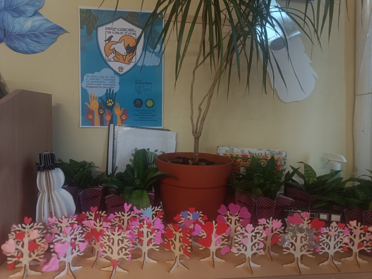 Klasa 3a wykonała walentynkowe eko-drzewka, które są symbolem miłości, przyjaźni i troski o środowisko. Kolorowe serduszka przypominają, że dbanie o Ziemię to także wyraz miłości. Uczniowie pokazali, że nawet małe, codzienne działania podejmowane z sercem pomagają chronić naszą planetę.