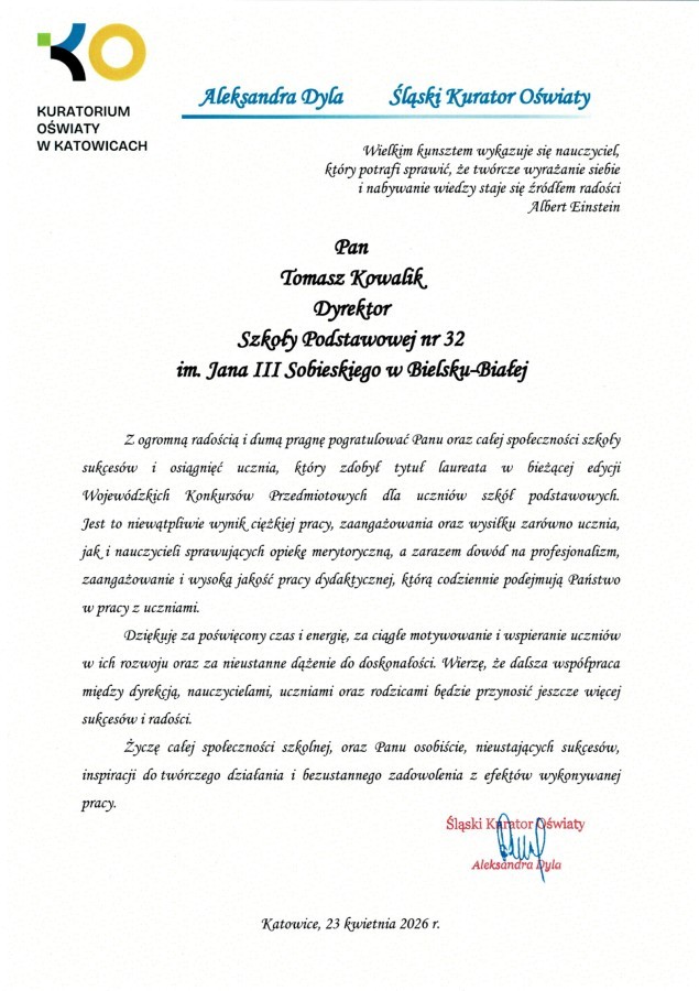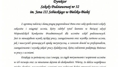 Podziękowania kierujemy również do nauczycieli przygotowujących ucznia oraz rodziców za nieustające wsparcie.