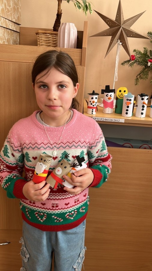 W grudniu klasy 3a, 3c, 3d, 2a, 2b, 2c, 2d, 1a, 1b wykonywały podczas zajęć dekoracje, ozdoby choinkowe pochodzące z recyklingu lub z rzeczy , które można wykorzystać ponownie. Zajęcia takie uczyły dzieci dbania o środowisko, oszczędzania surowców oraz kreatywnego myślenia. Z pozornie niepotrzebnych przedmiotów powstawały choinki, łańcuchy, bombki, gwiazdki czy stroiki. Takie działania pokazały, że święta mogą być ekologiczne i przyjazne dla przyrody.