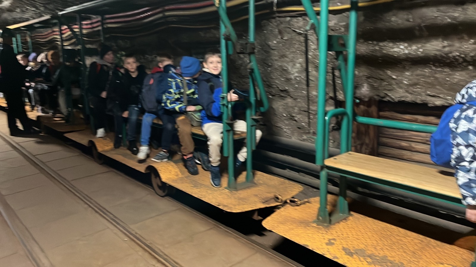 Na początku spotkaliśmy się z przewodnikiem, który opowiedział nam o historii kopalni oraz zasadach bezpieczeństwa. Zjechaliśmy pod ziemię specjalną windą, a następnie ruszyliśmy w drogę podziemną kolejką górniczą. W środku zobaczyliśmy dawne korytarze, kaplice i rzeźby wykute w soli. Oglądaliśmy również ciekawe pokazy multimedialne, które przedstawiały, jak dawniej wyglądała praca górników.