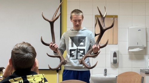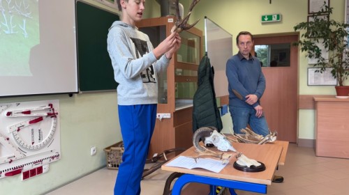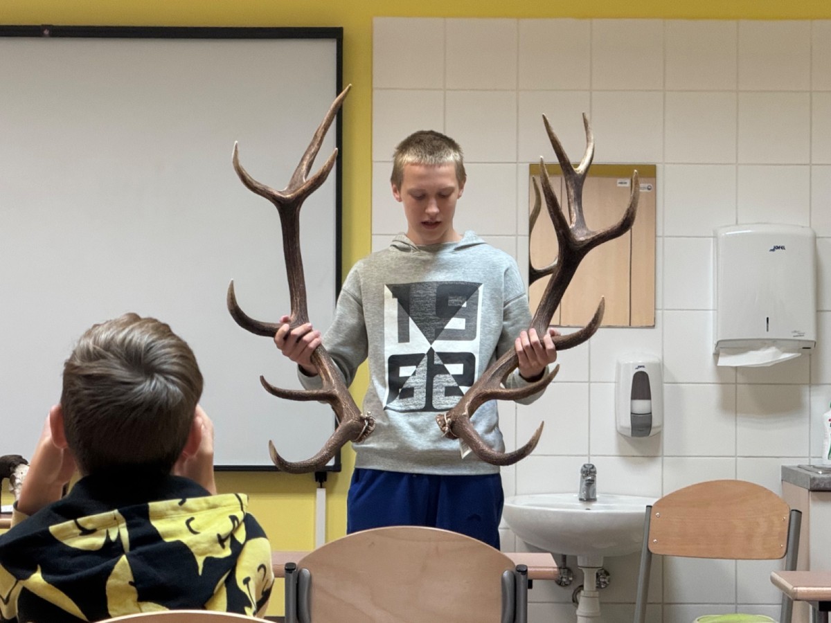 2 października w Naszej Szkole odbyło się spotkanie informacyjne dotyczące bioróżnorodności. Łukasz Olender, uczeń klasy 8c wraz ze swoim tatą – pasjonatą specjalizującym się w tej dziedzinie – przedstawili prezentację na temat swoich zainteresowań: poroży, które sami zbierają wiosną w lesie. Opowiedzieli o różnych rodzajach rogów, poroży, a także o zwierzętach, które je zrzucają.