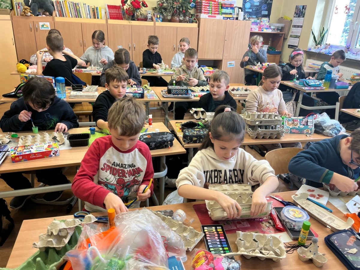 W styczniu w klasach 3b i 3c zostały przeprowadzone warsztaty, które poprzez zabawę uczyły dzieci segregacji śmieci, recyklingu i dbania o środowisko. Po części edukacyjnej uczniowie wykazali się dużą pomysłowością, kreatywnością, udowadniając, że można wykorzystać opakowania po jajkach do stworzenia wyjątkowych, niepowtarzalnych zabawek.